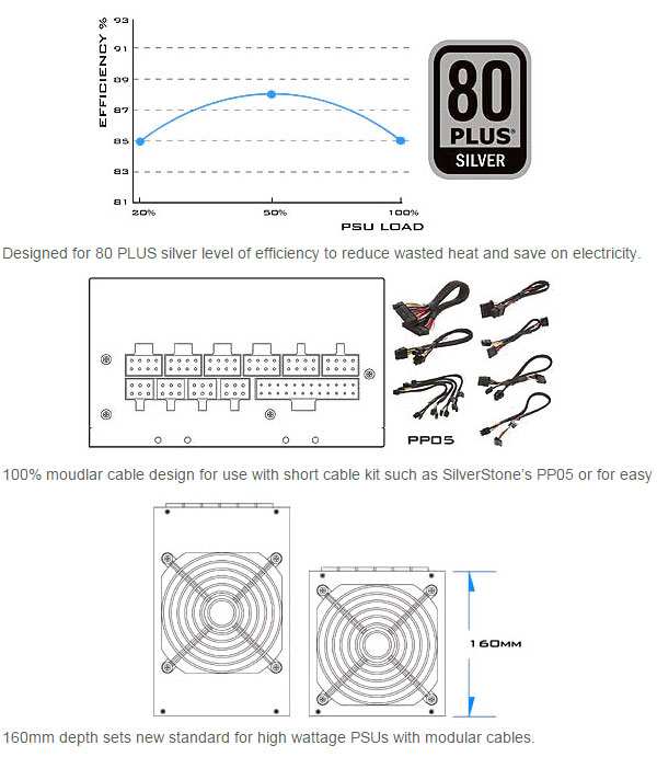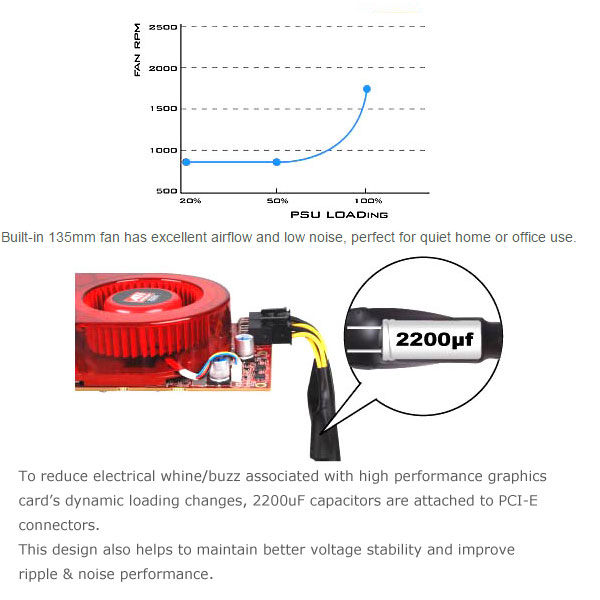 Connectors | 1 x 24 / 20-Pin motherboard connector(550mm) 1 x 8 / 4-Pin EPS / ATX 12V connector(750mm) 1 x 8 / 4-Pin EPS / ATX 12V connector(550mm) 4 x 8/6-Pin PCIE connector(550mm) 2 x 6-Pin PCIE connector(550mm / 150mm) 6 x SATA connector(500mm / 250mm / 250mm) 6 x 4-Pin Peripheral connector (500mm / 250mm / 250mm) 2 x 4-Pin Floppy connector(500mm / 250mm / 250mm / 150mm) |