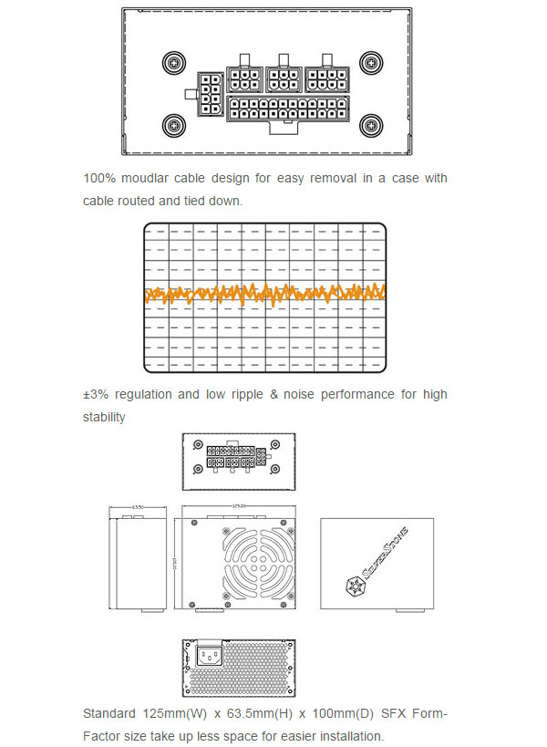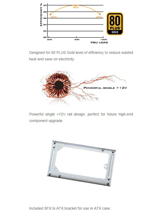 Connectors | 1 x 24 / 20-Pin motherboard connector(300mm) 1 x 8 / 4-Pin EPS / ATX 12V connector(400mm) 1 x 8/6-Pin PCIE connector(400mm) 1 x 6-Pin PCIE connector(400mm / 150mm) 3 x SATA connector(300mm / 200mm / 100mm) 2 x 4-Pin Peripheral connector (300mm / 200mm) 1 x 4-Pin Floppy connector(300mm / 200mm / 200mm) |