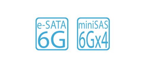Interfaces | 2 x e-SATA port ( 6G / 7pin) | 2 x Mini-SAS port (SFF8088 / 26 pin) |