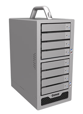 Standing no more than 12 inches tall and only 5 inches wide, the ST8 Series is the market’s most compact eight drive system enclosure to fit anywhere without taking much room. For field editing applications, the ST8 can also be made portable as it comes equipped with a grip handle that you can choose to install yourself, making creative contents mobile convenient and less bulky.