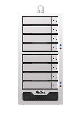 The ST8 Series is available in eSATA ( 6G ) version or mini-SAS for the best output in performance. The SAS version is capable of accepting either SAS or SATA hard drives for the most cost effective and flexible storage system to own.